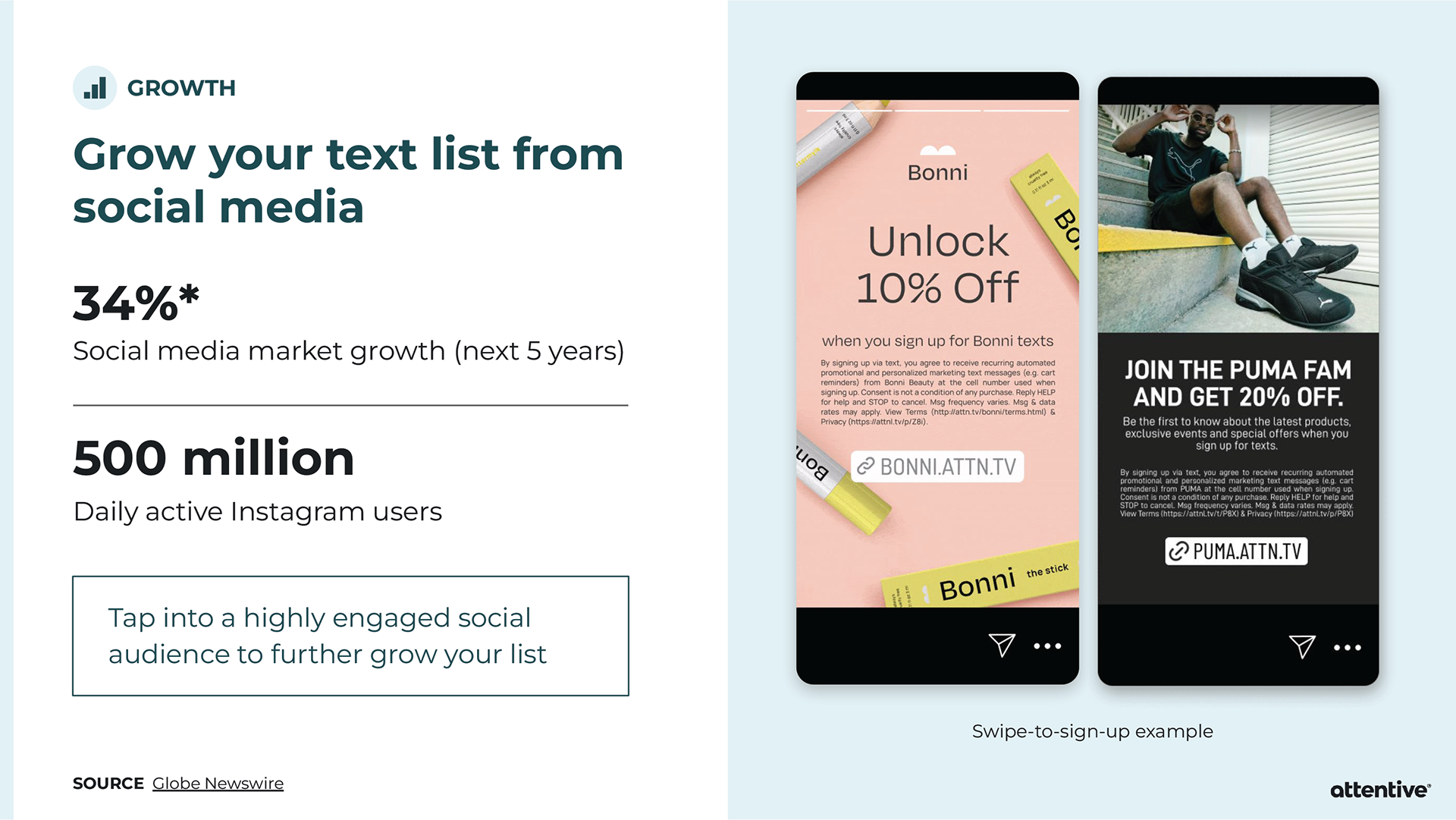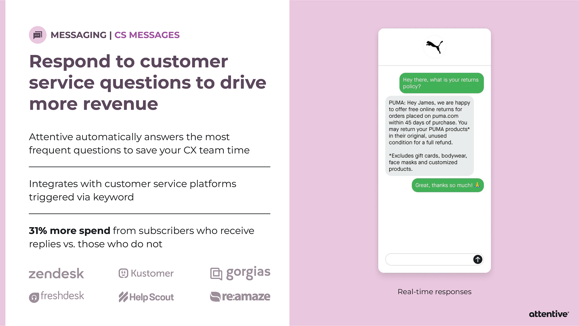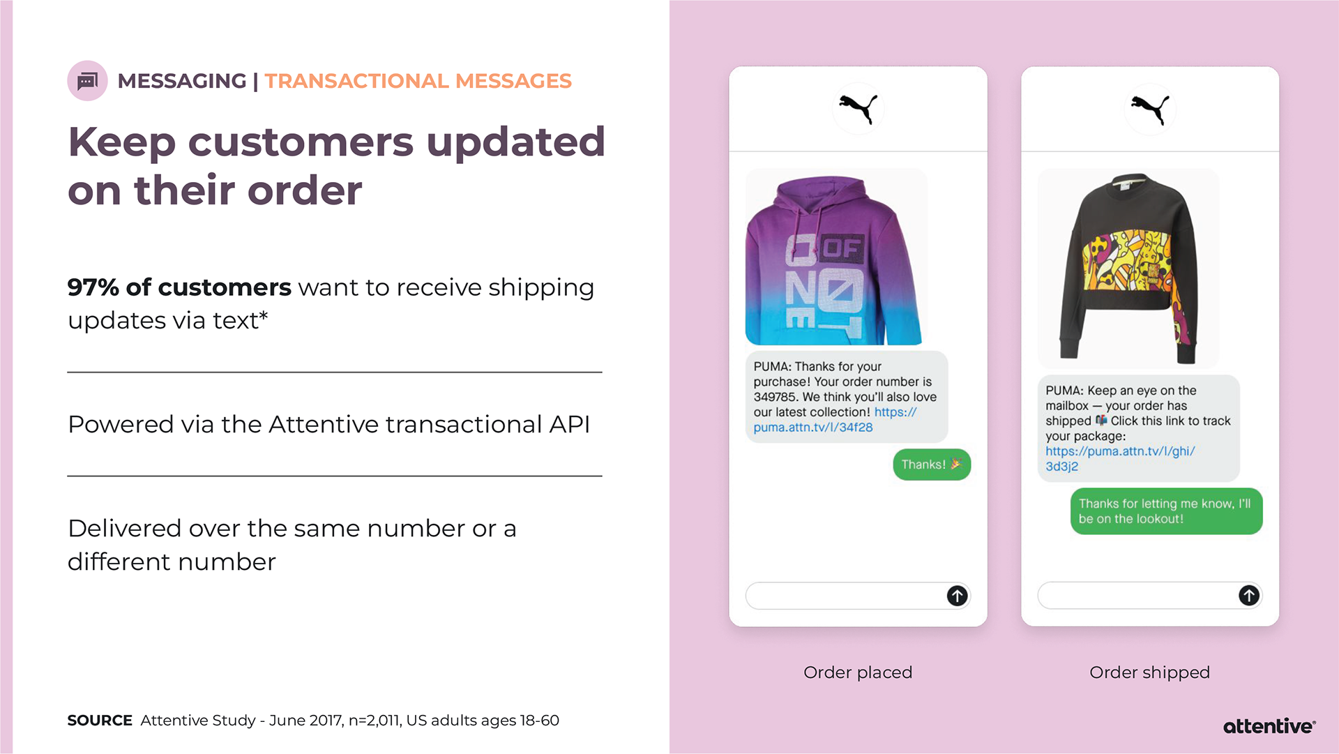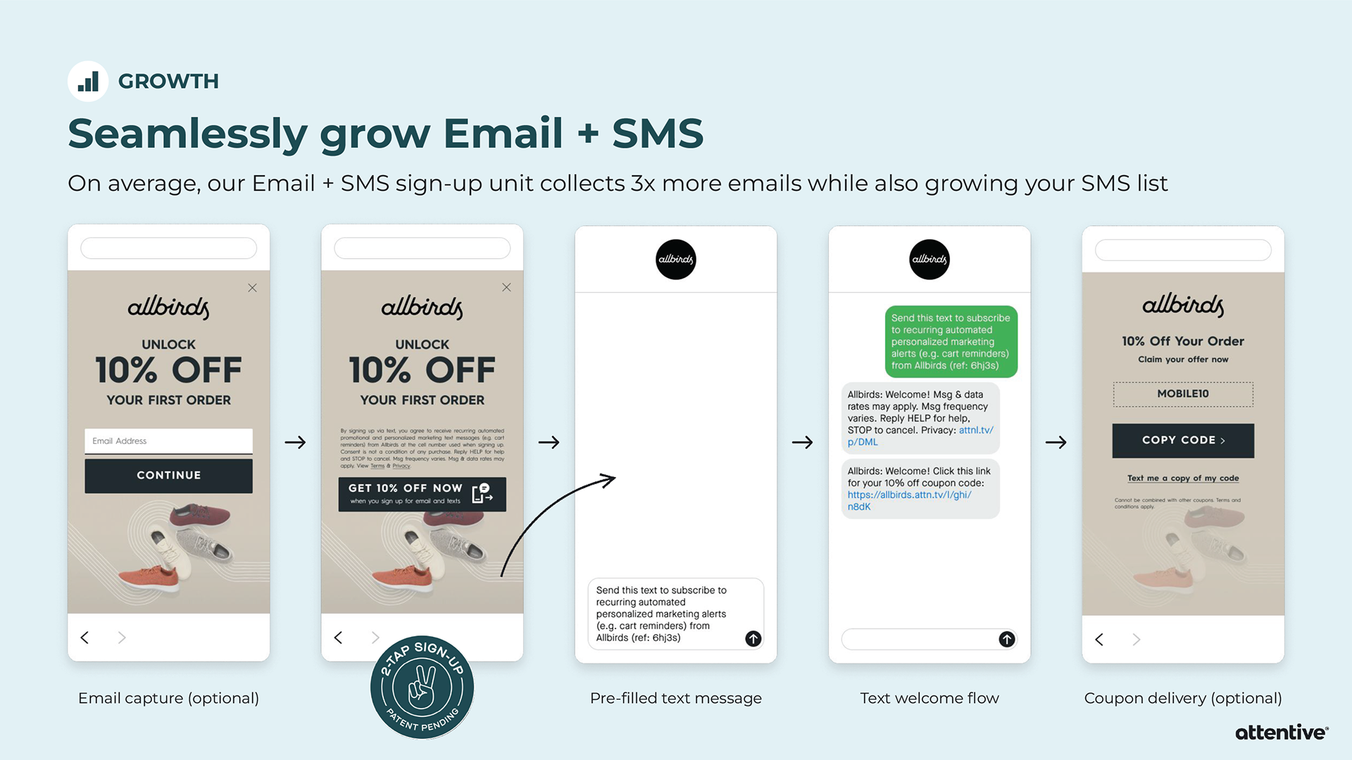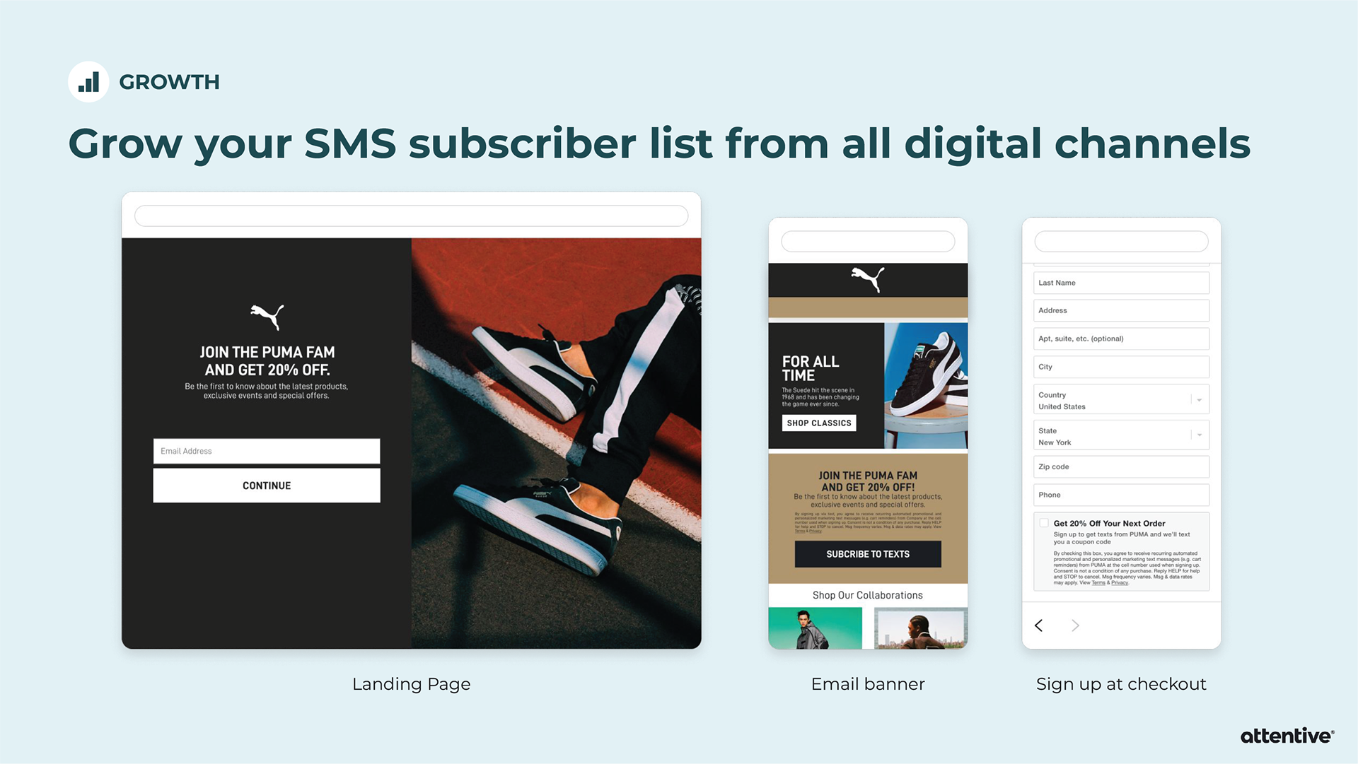 When pitching Attentive to a potential client, sometimes the Sales team will provide an extensive slide deck tailored towards that individual company. Strategic Design is asked to provide custom mockups for the slide deck, and then it’s all up to Sales. I’ve created mockups for Allbirds, PUMA, and Sony Entertainment Pictures.