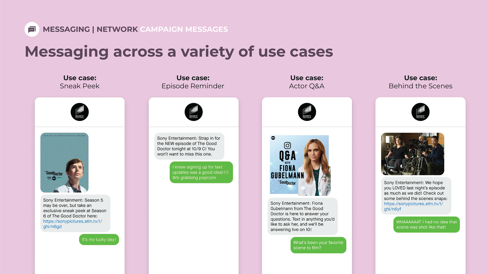 Sony Pictures Entertainment wanted to see messaging across a variety of use cases.