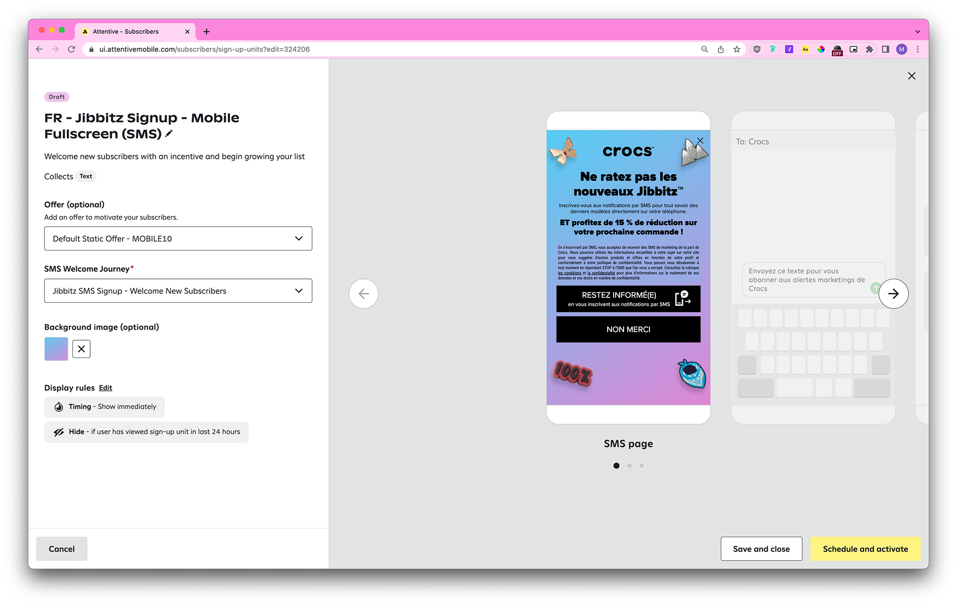 324206: FR - Jibbitz Signup - Mobile Fullscreen (SMS)