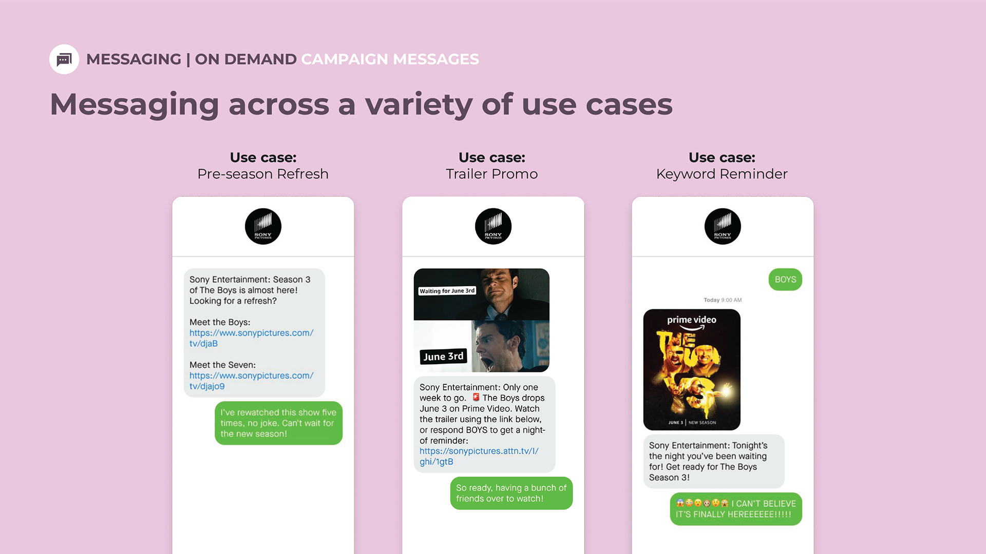 Sony Pictures Entertainment wanted to see messaging across a variety of use cases.