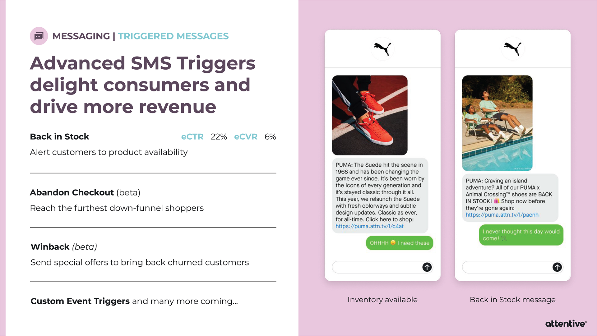 I successfully convinced Swank A Posh to return as an Attentive client by providing them choices that were highly tailored to their brand’s voice. Below are the previous mockups (top) and my new mockups (bottom).