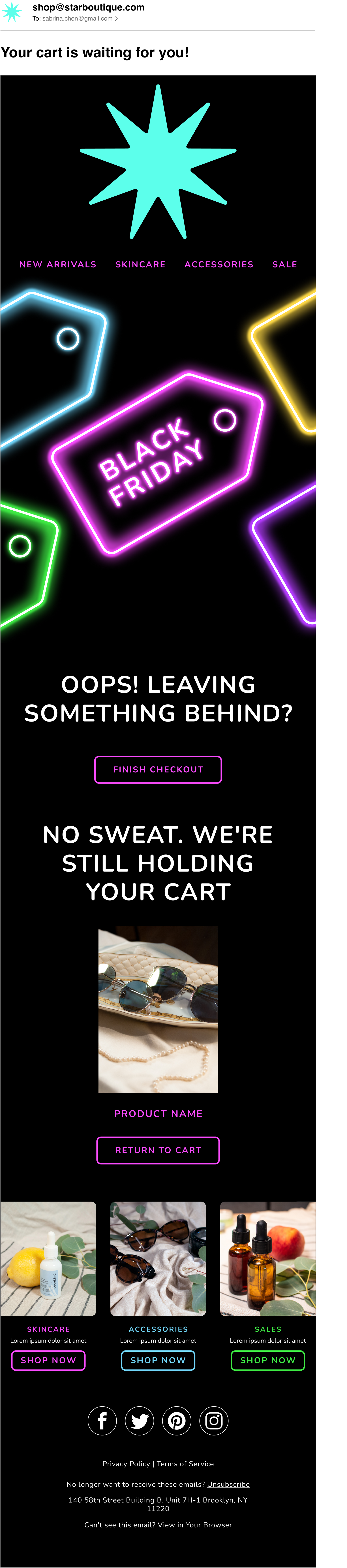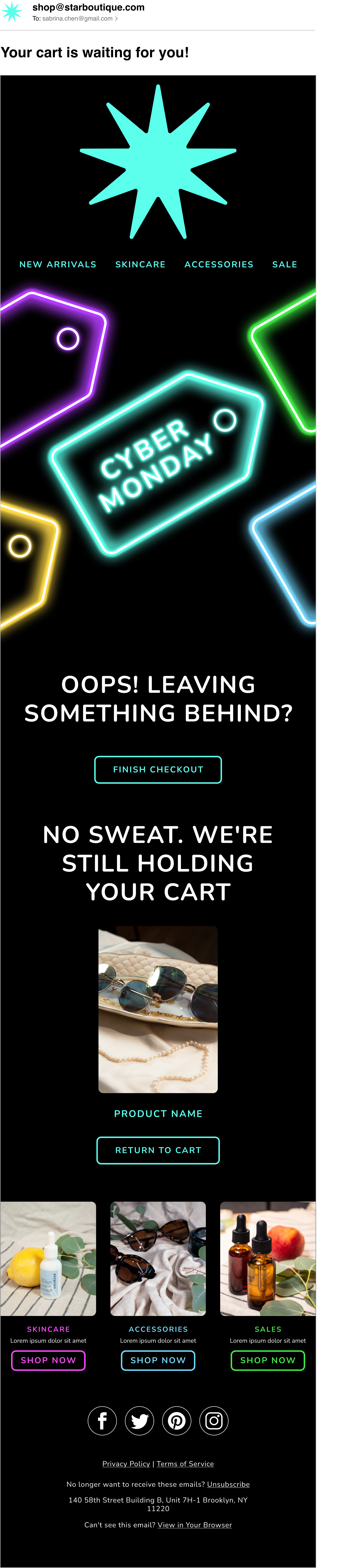 For Strategic Design’s initiative to provide over 40 themed email templates for our clients to use, I mocked up and built a matching set of templates for Black Friday and Cyber Monday (by far the busiest time of the year for us and our clients). I based the visual motifs around a sale tags asset Audrey Zhang made.