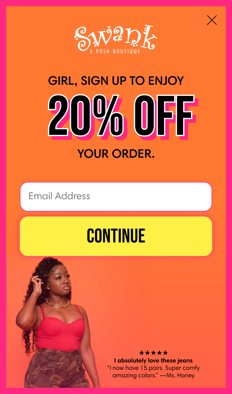 Five months later, I’m happy to say that Swank a Posh is still a client of Attentive (as of October 2022) and is currently utilizing our new spin to win sign-up units (not pictured).