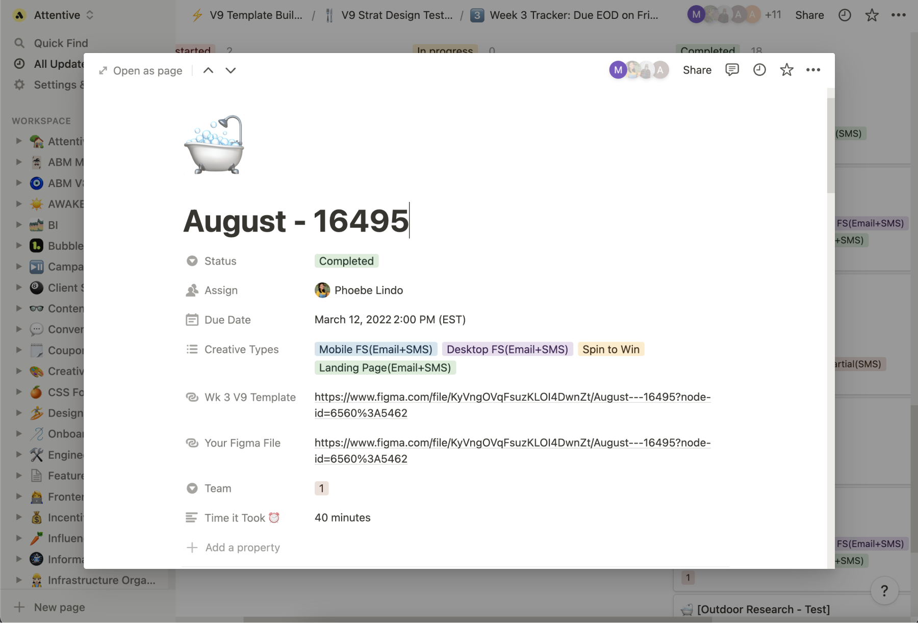 Throughout this process, I learned so much about roadmapping a project, creating a realistic project timeline, collaborating with others while taking on distinct roles, user testing, onboarding, leading a project, presenting said project to others outside of my team, and, of course, the ins and outs of Figma (auto layout, components, variants, you name it). To this day, I continue to update the V9 Template to stay in line with new features in Attentive’s Creative Builder (like spin to win landing pages and adding backgrounds to the “X” close icon) and Figma (like absolute position).