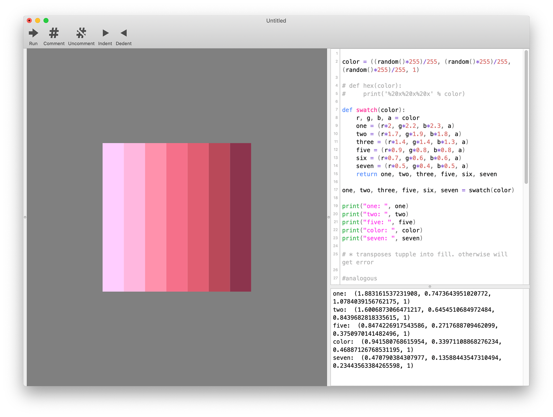 Other explorations involved heavy use of the random() function (Math.random() in Java) to generate random RGB values. DrawBot is also great for making GIFs! What’s not to love?